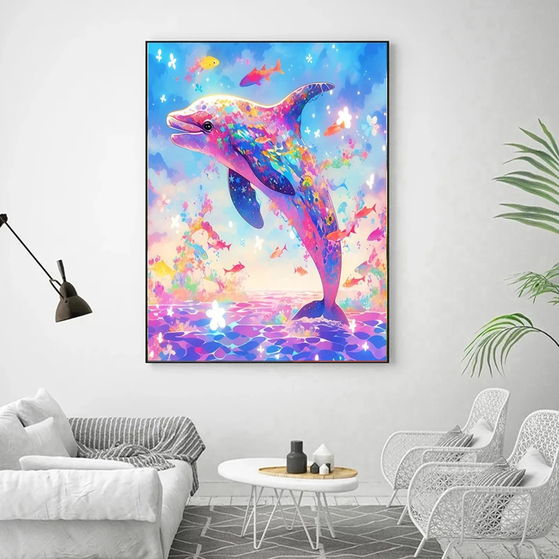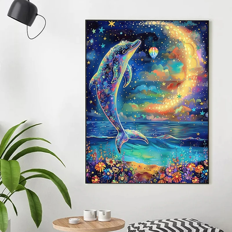 Moon 100% Fairy Dust Drill Diamond Painting Dolphin Full Crystal Diamond Mosaic Embroidery Animal Cross Stitch Kit Home Decor