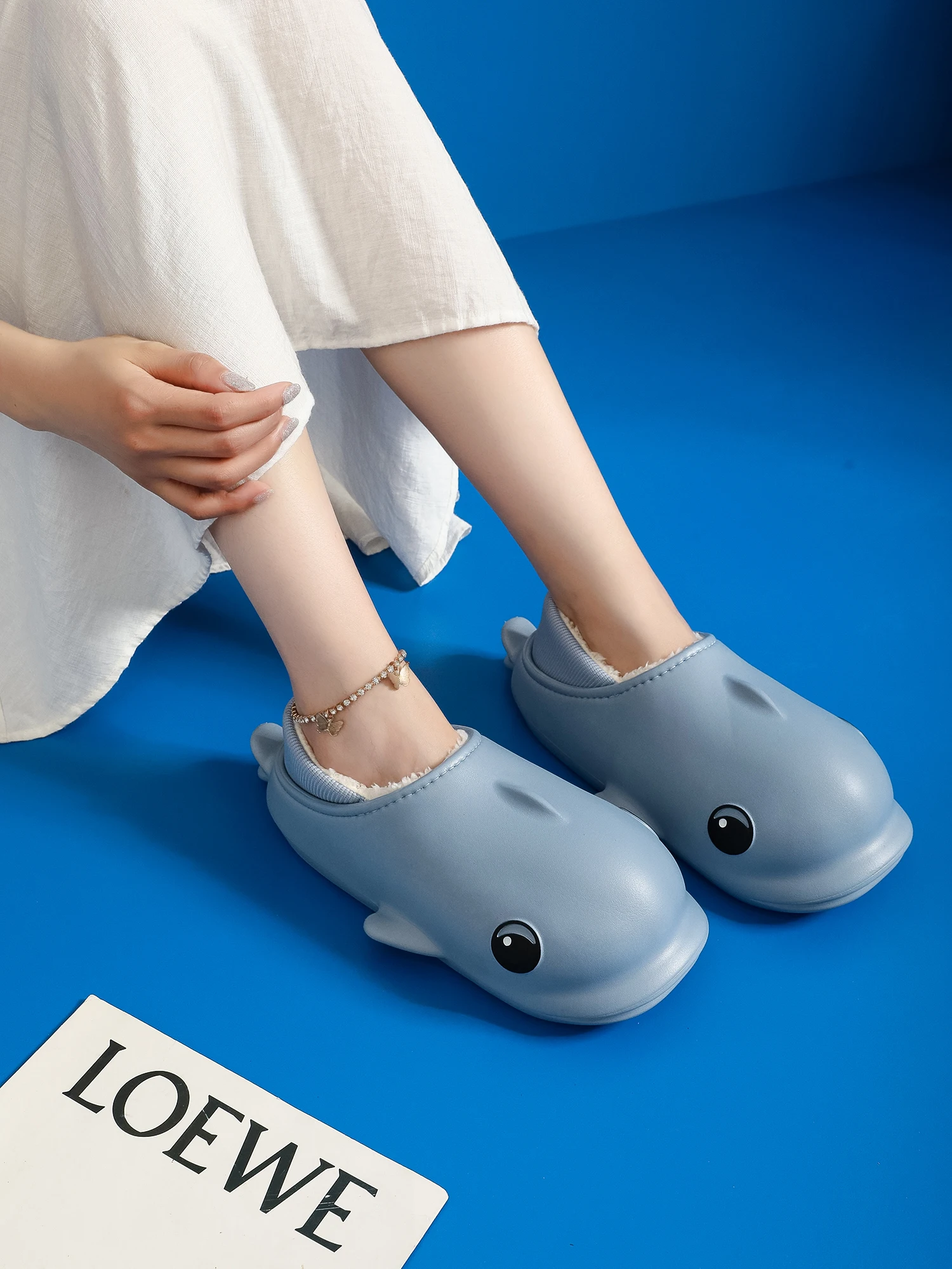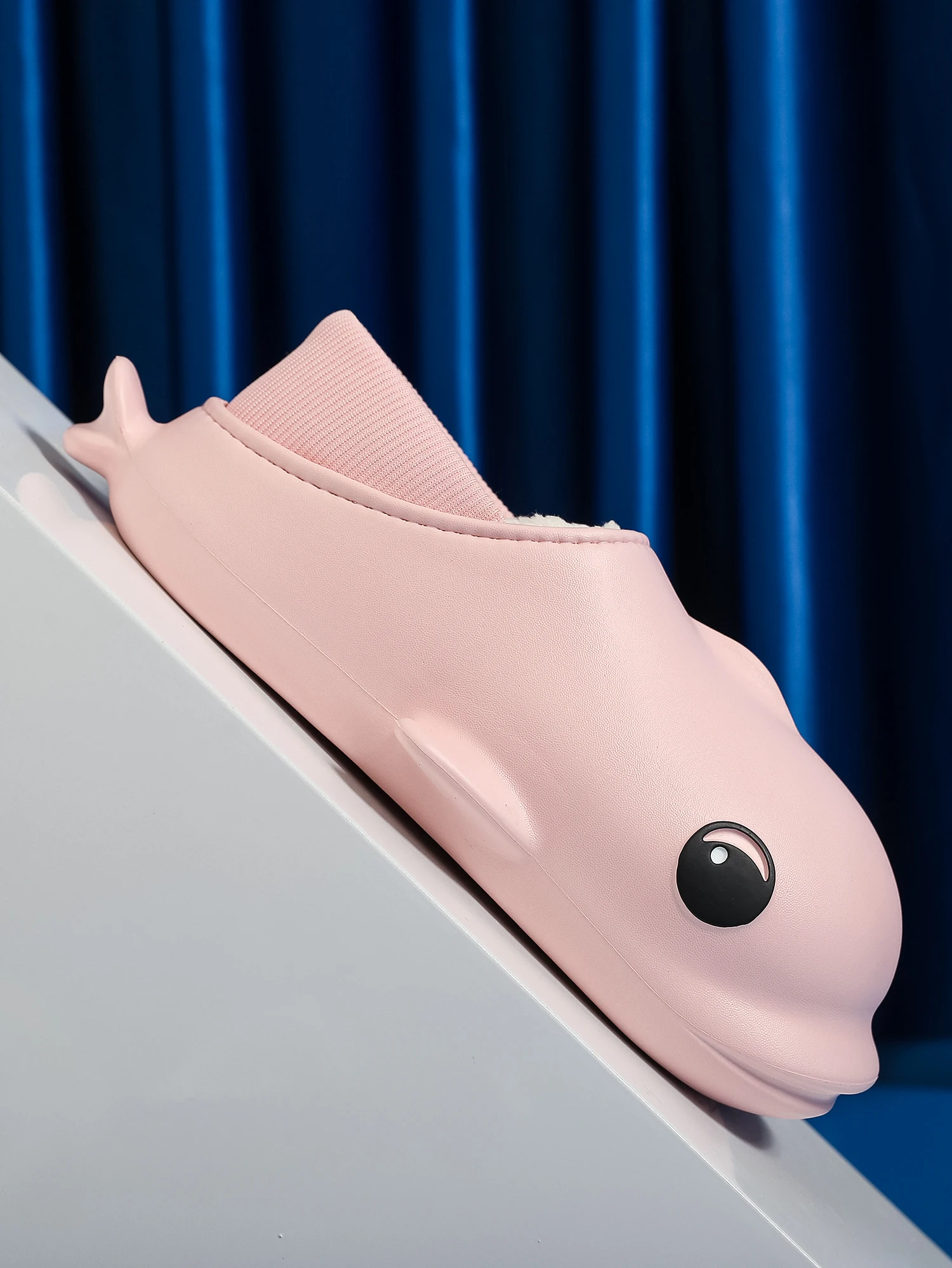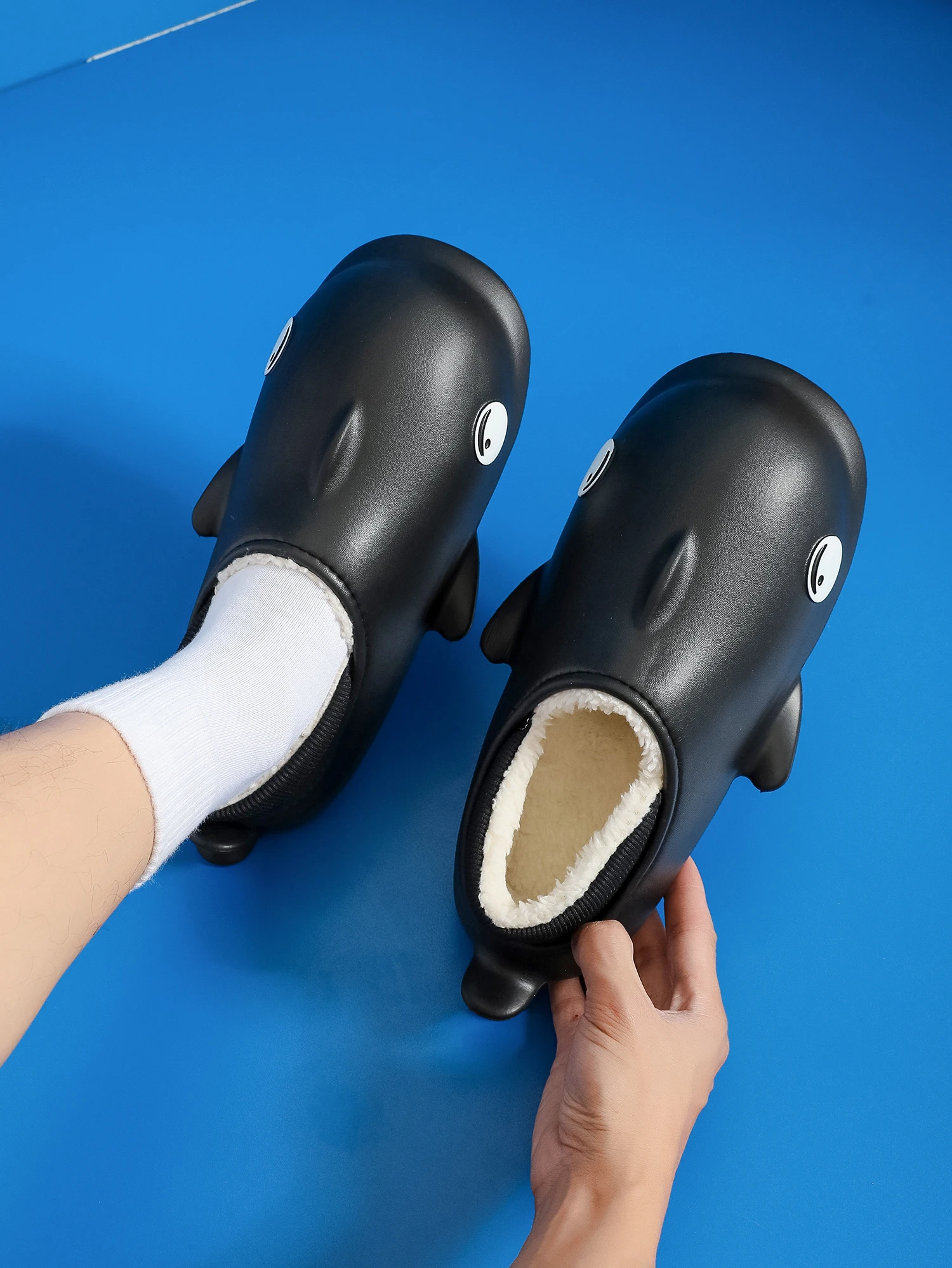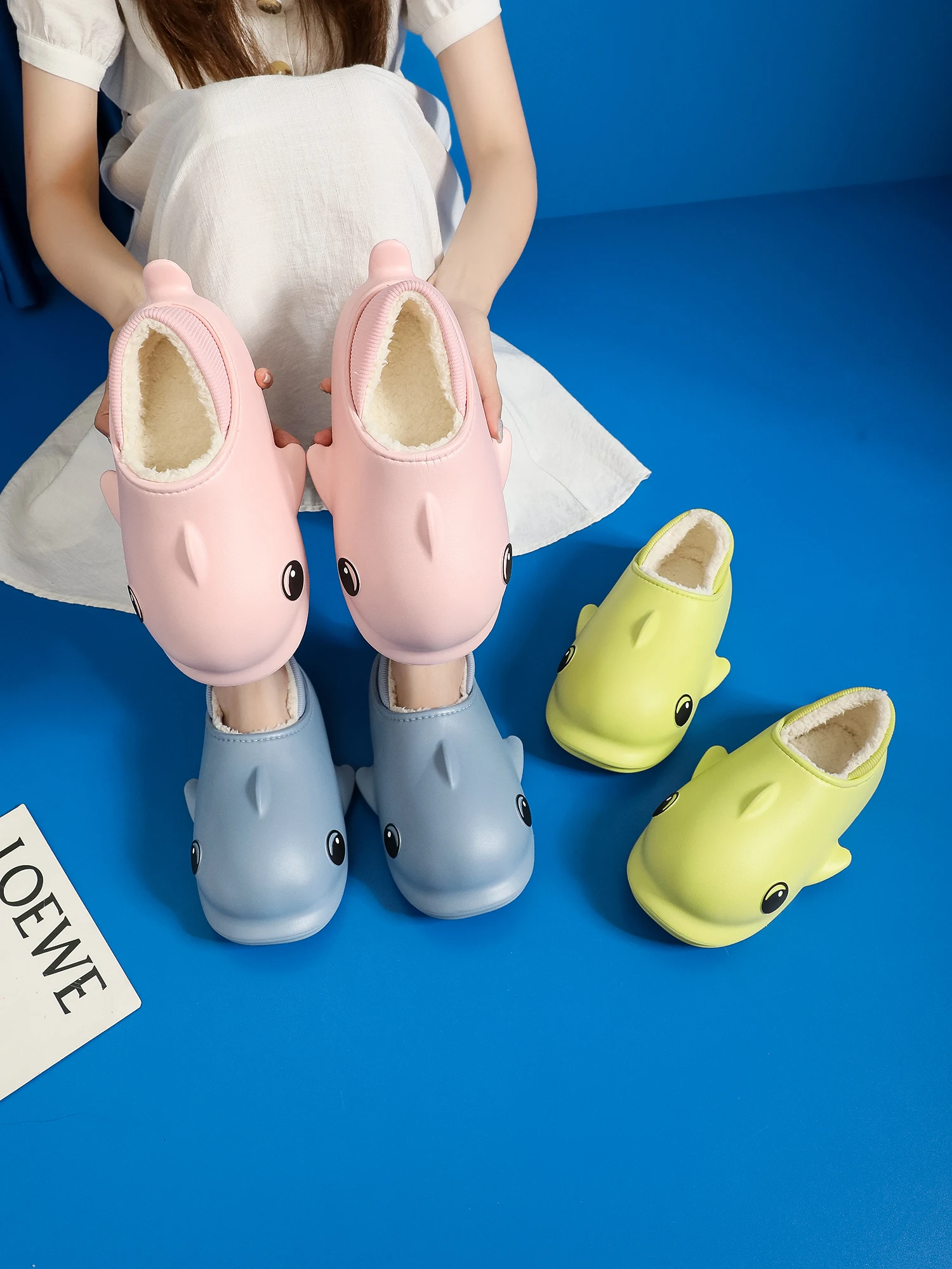 YISHEN Dolphins Slippers Women Warm Plush Winter Men Slides Cute Boys And Girls Children's Shoes Floor Home Slippers Zapatillas